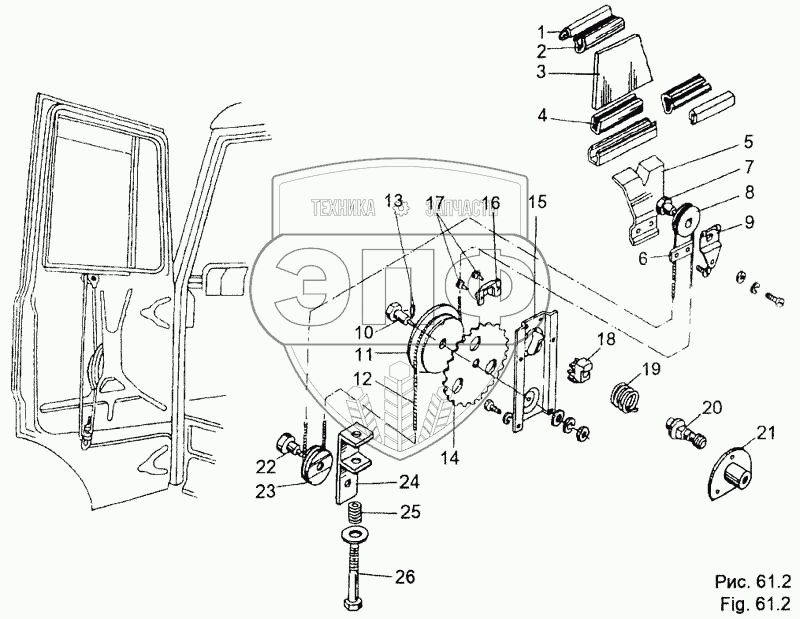 Каталог запасных частей к технике: МЗКТ-65158. Механизм подъема стекла