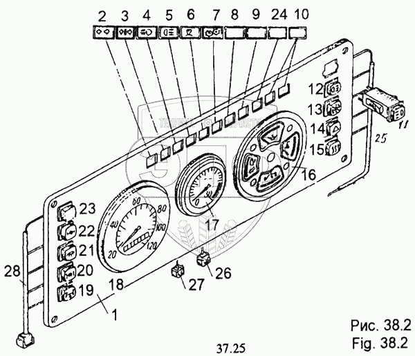 Каталог запасных частей к технике: МЗКТ-65158. Панель приборов