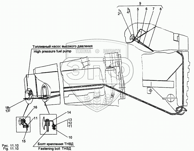 Каталог запасных частей к технике: МЗКТ-65158. Привод останова двигателя