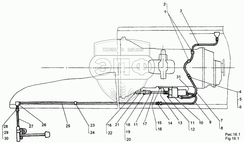 Каталог запасных частей к технике: МЗКТ-65158. Привод управления сцеплением
