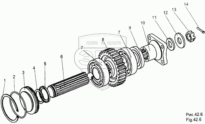 Каталог запасных частей к технике: МЗКТ-65158. Шестерня ведомая