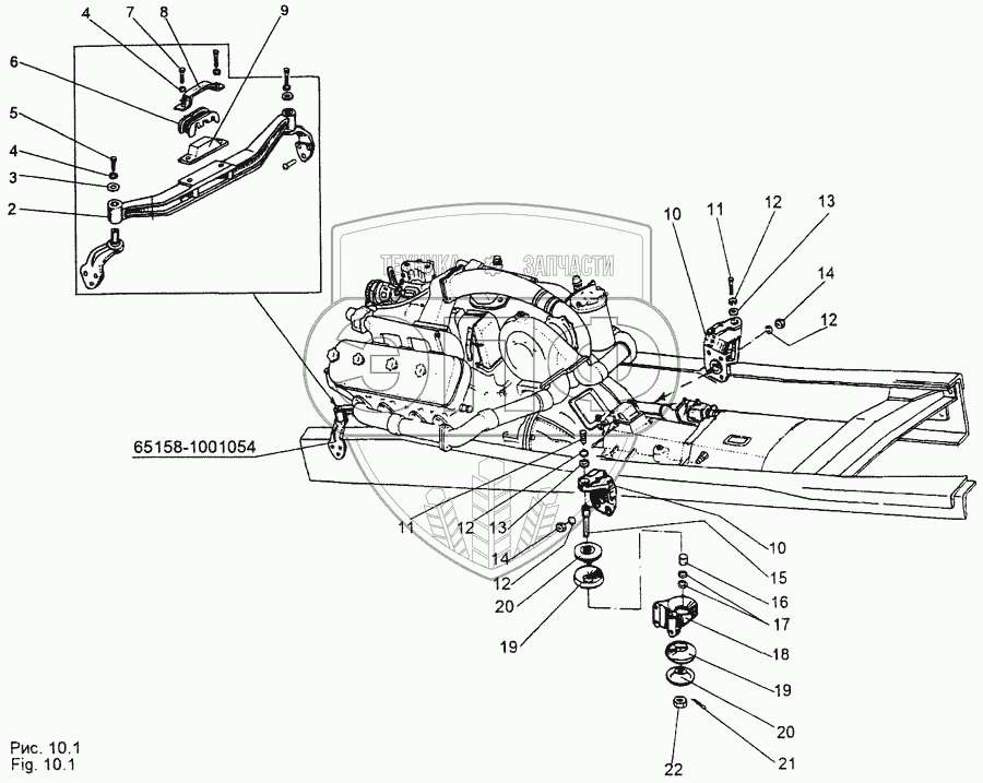 Каталог запасных частей к технике: МЗКТ-65158. Установка двигателя