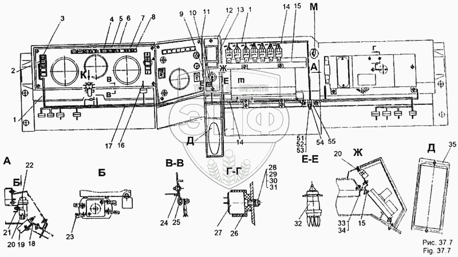 Каталог запасных частей к технике: МЗКТ-65158. Установка электрооборудования в кабине