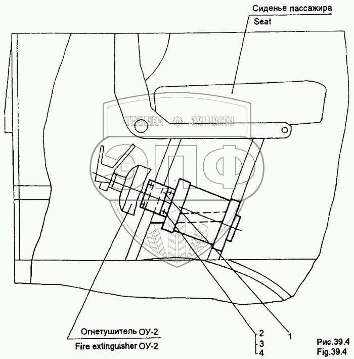 Каталог запасных частей к технике: МЗКТ-65158. Установка огнетушителей