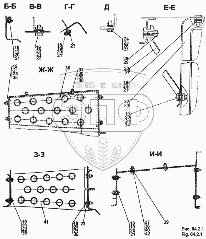 Каталог запасных частей к технике: МЗКТ-65158. Установка подножек