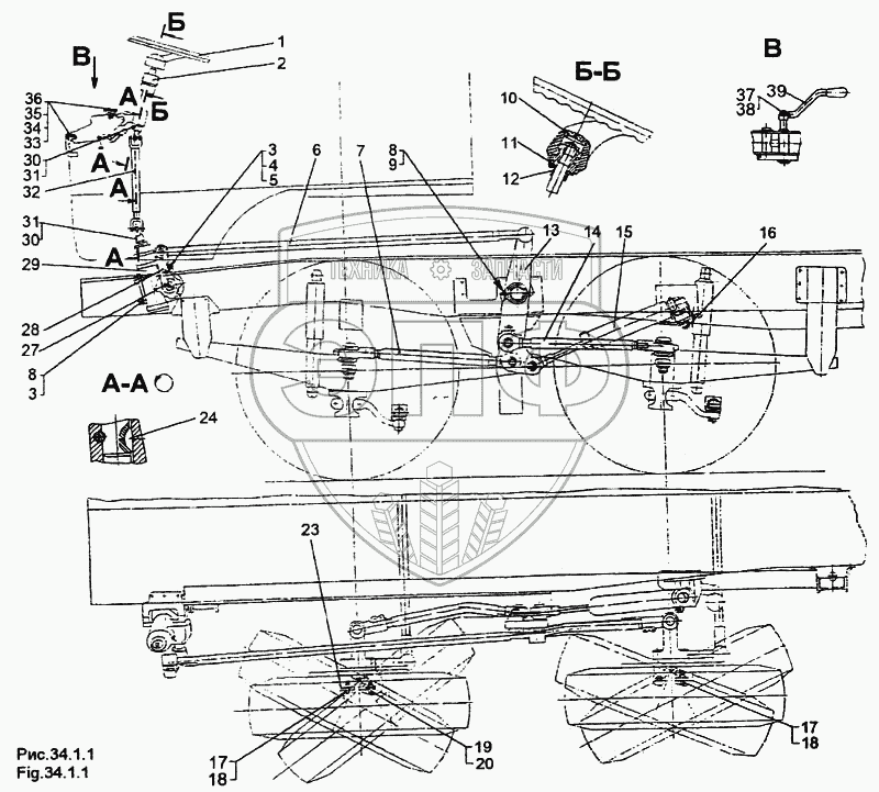 Каталог запасных частей к технике: МЗКТ-65158. Установка рулевого управления