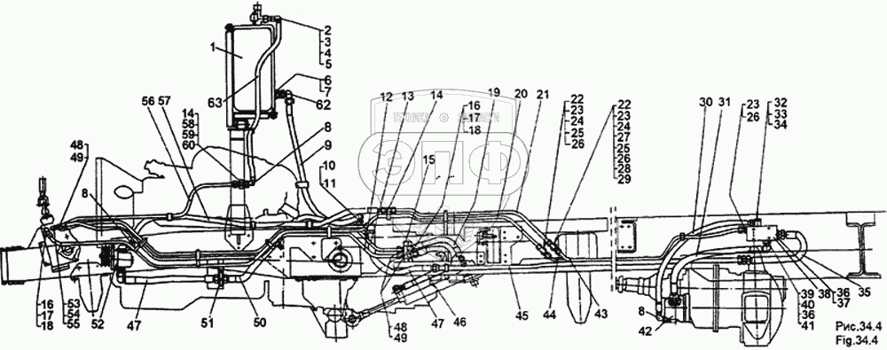 Каталог запасных частей к технике: МЗКТ-65158. Установка шлангов и трубопроводов