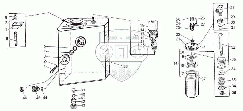Каталог запасных частей к технике: МЗКТ-652511. Бак масляный 652511-3410010