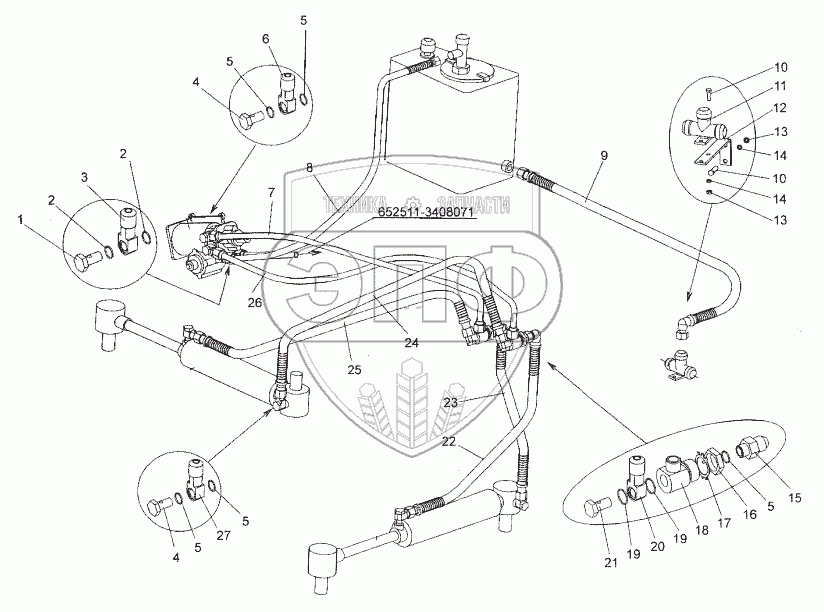 Каталог запасных частей к технике: МЗКТ-652511. Трубопроводы и шланги рулевого механизма