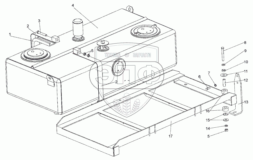 Каталог запасных частей к технике: МЗКТ-652511. Установка бака