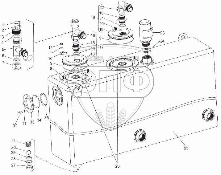 Каталог запасных частей к технике: МЗКТ-6527. Бак 79011-8608010-10