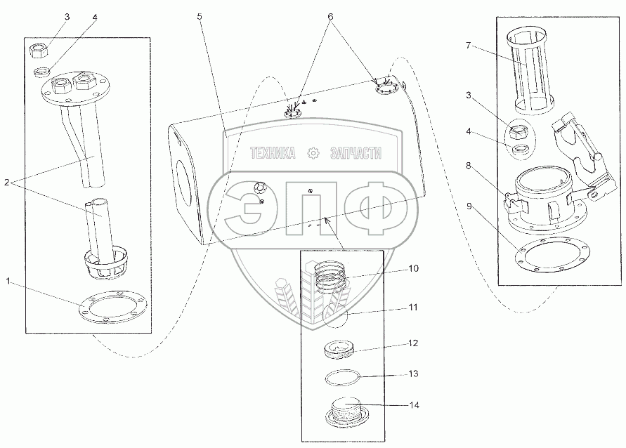Каталог запасных частей к технике: МЗКТ-6527. Бак топливный 7401-1102010