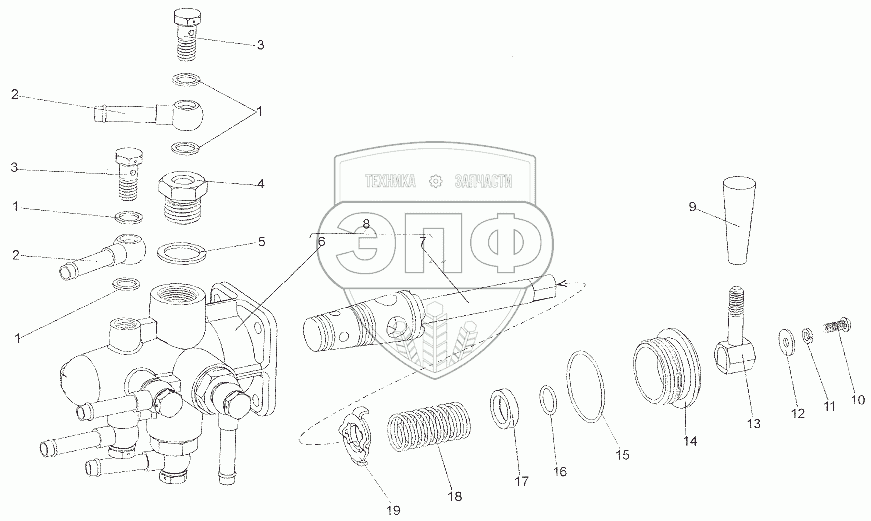 Каталог запасных частей к технике: МЗКТ-6527. Кран топливораспределительный 7401-1116010