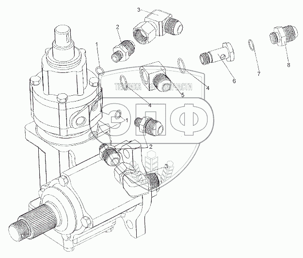 Каталог запасных частей к технике: МЗКТ-6527. Присоединительная арматура к распределителю