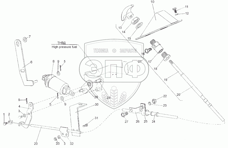 Каталог запасных частей к технике: МЗКТ-6527. Приводы останова двигателя