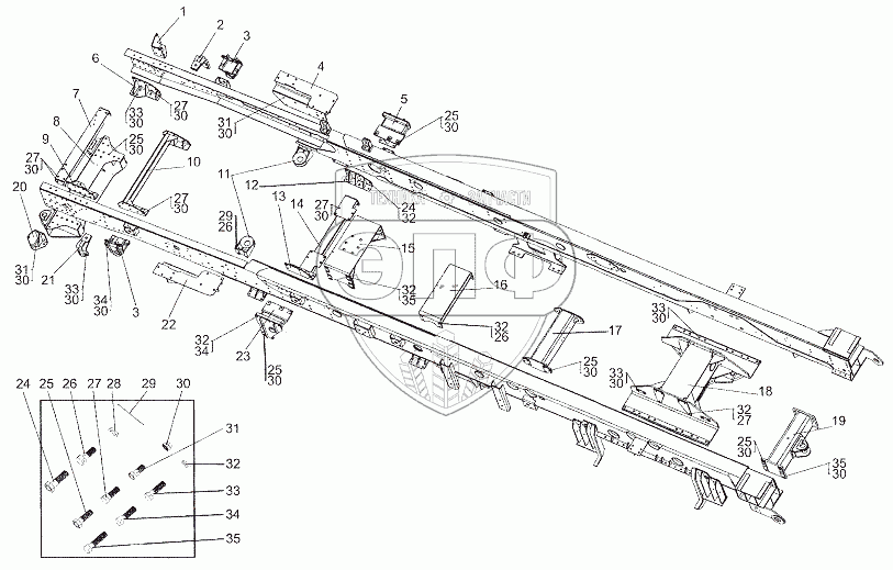 Каталог запасных частей к технике: МЗКТ-6527. Рама 6527-2800012