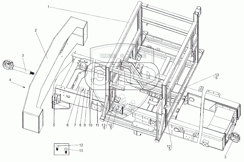 Каталог запасных частей к технике: МЗКТ-6527. Рама 7402-2800001