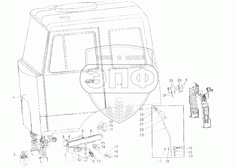 Каталог запасных частей к технике: МЗКТ-6527. Установка кабины