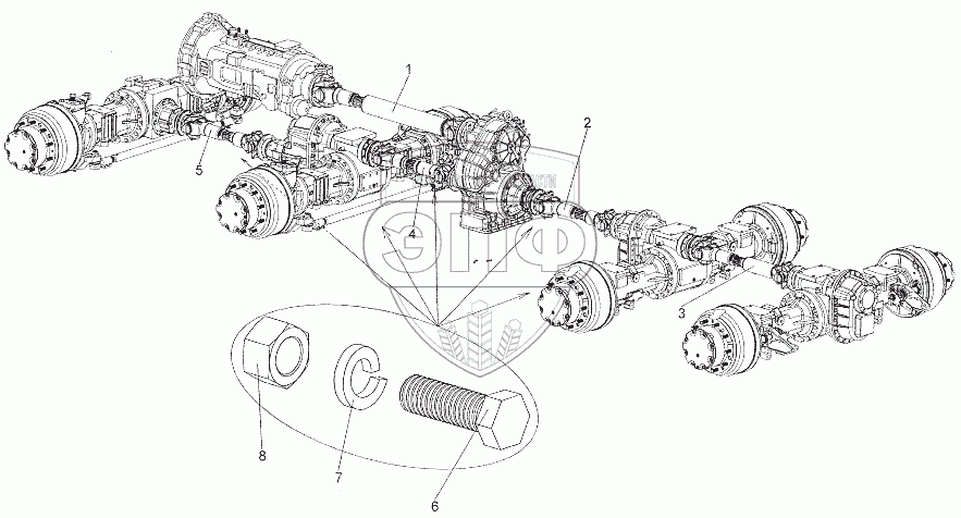 Каталог запасных частей к технике: МЗКТ-6527. Установка карданных валов