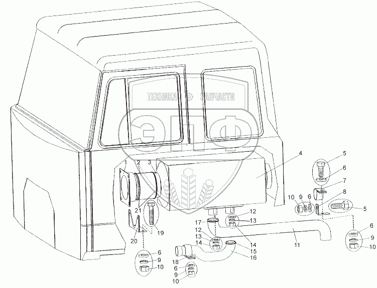 Каталог запасных частей к технике: МЗКТ-6527. Установка отопителя независимого действия