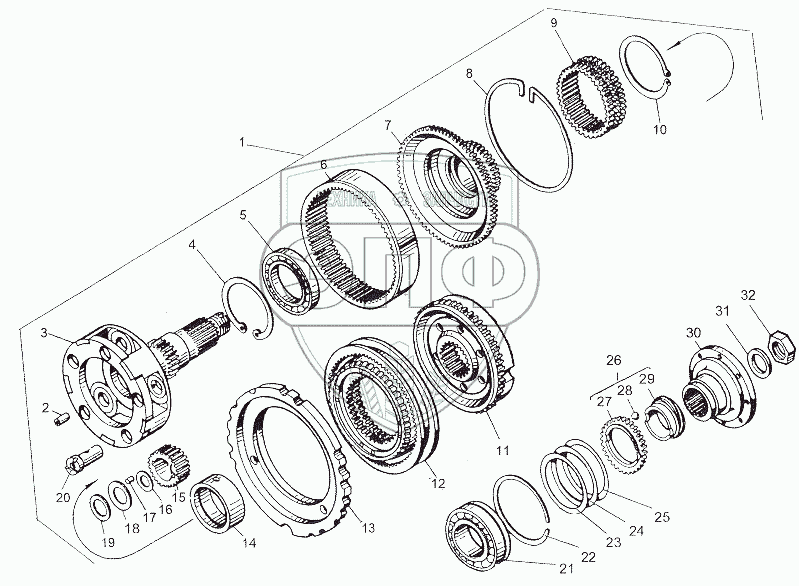 Каталог запасных частей к технике: МЗКТ-6527. Вал выходной