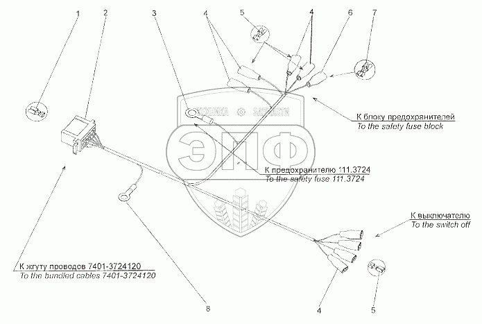 Каталог запасных частей к технике: МЗКТ-6527. Жгут проводов подогревателя 65276-3724090
