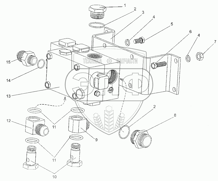 Каталог запасных частей к технике: МЗКТ-700600-011. Установка блока клапанов
