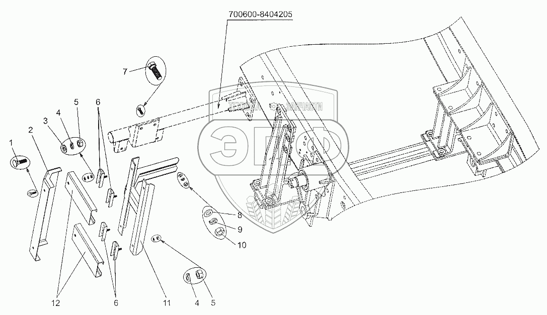 Каталог запасных частей к технике: МЗКТ-700600-011. Установка бокового ограждения