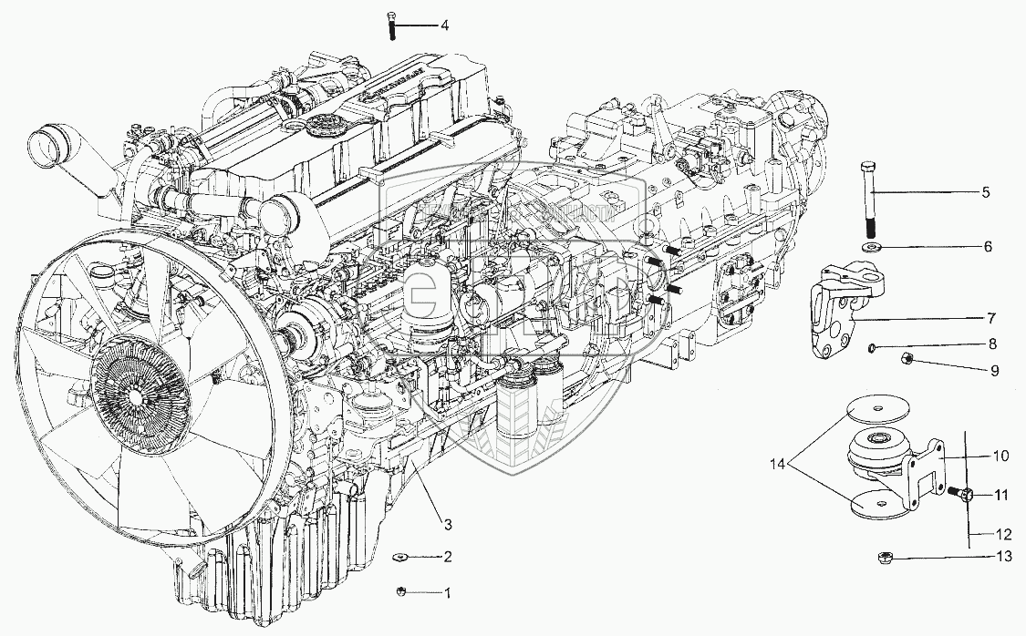 Каталог запасных частей к технике: МЗКТ-700600-011. Установка двигателя