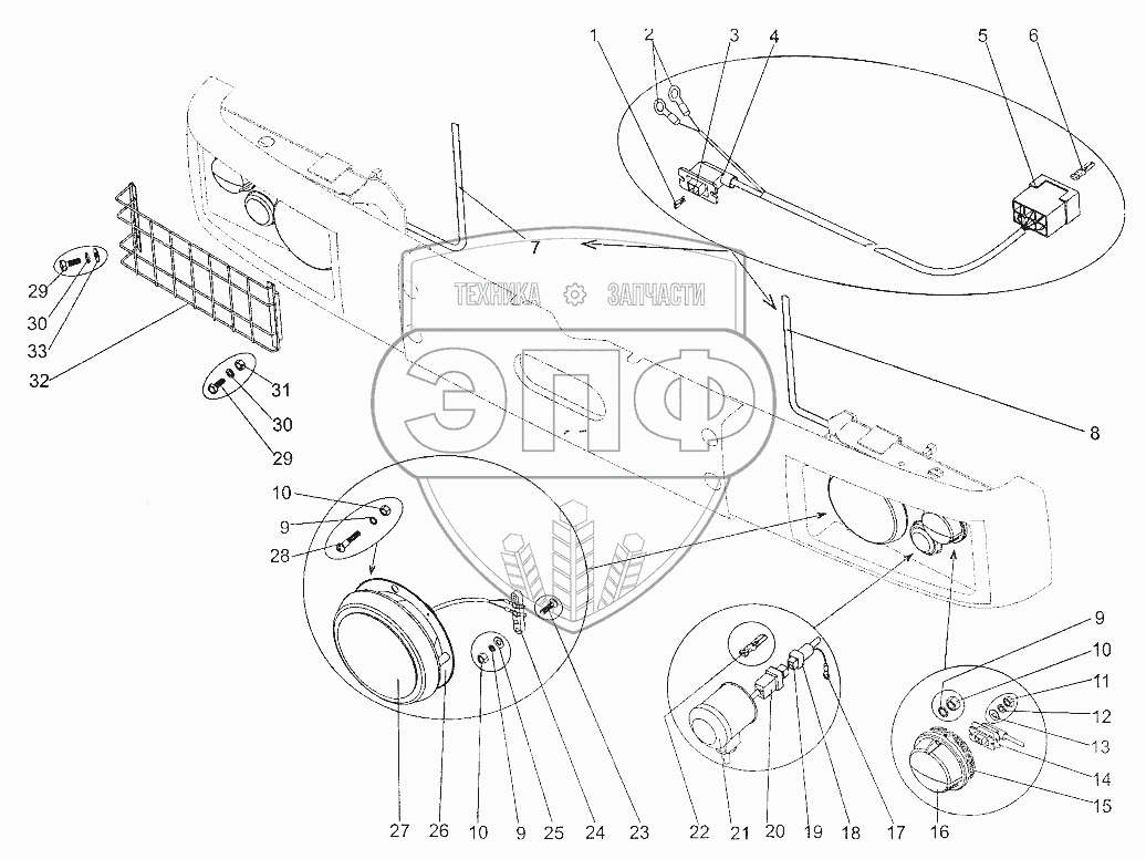 Каталог запасных частей к технике: МЗКТ-700600-011. Установка головного освещения