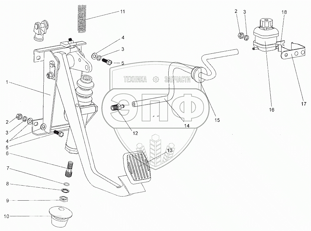 Каталог запасных частей к технике: МЗКТ-700600-011. Установка механизма управления сцеплением