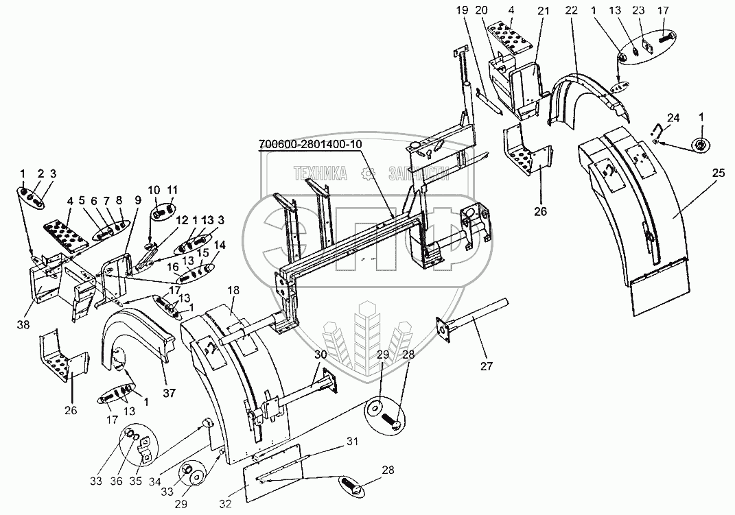 Каталог запасных частей к технике: МЗКТ-700600-011. Установка подножек
