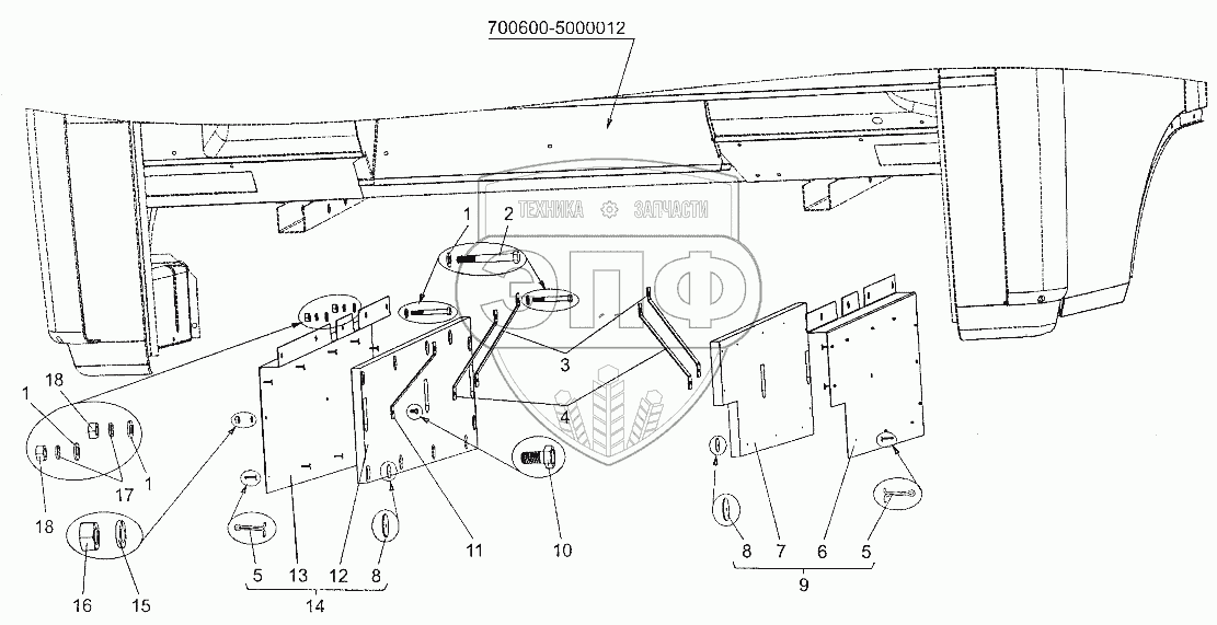 Каталог запасных частей к технике: МЗКТ-700600-011. Установка термошумоизоляции оперения