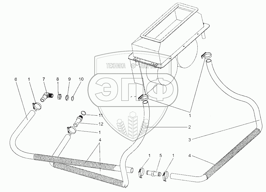 Каталог запасных частей к технике: МЗКТ-700600-011. Установка трубопроводов отопителя кабины