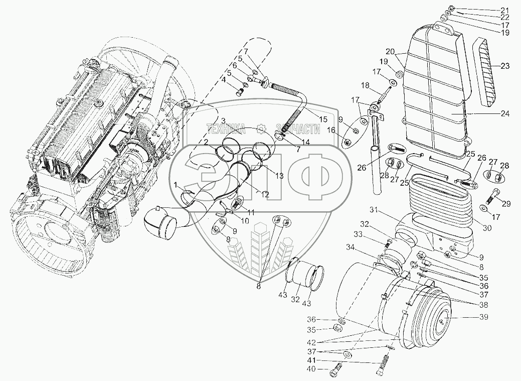 Каталог запасных частей к технике: МЗКТ-700600-011. Установка воздухоочистителя