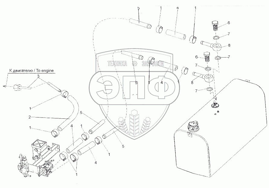 Каталог запасных частей к технике: МЗКТ-7401. Топливопроводы верхнего топливного бака