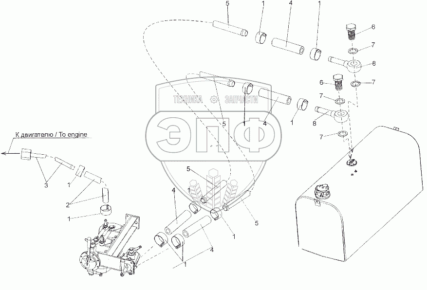 Каталог запасных частей к технике: МЗКТ-7401. Топливопроводы верхнего топливного бака