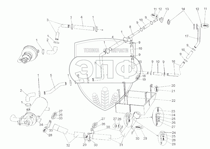 Каталог запасных частей к технике: МЗКТ-7401. Трубопроводы системы подогрева двигателя