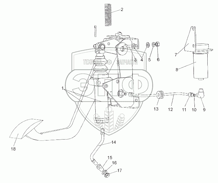 Каталог запасных частей к технике: МЗКТ-7401. Установка механизма управления сцеплением
