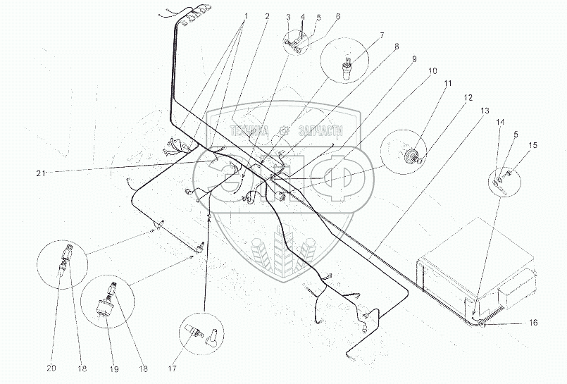 Каталог запасных частей к технике: МЗКТ-7401. Установка электрооборудования двигателя