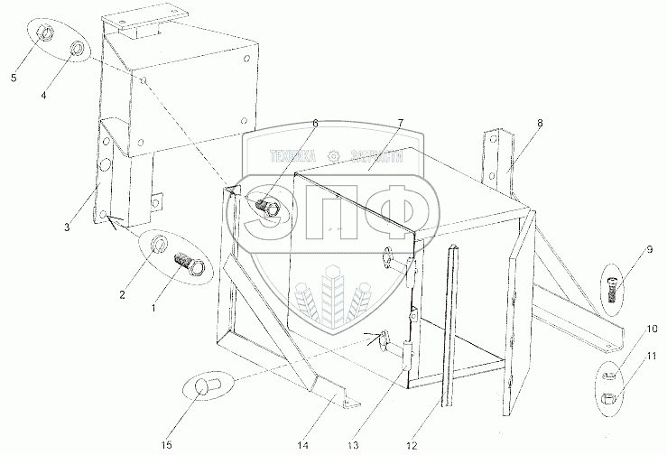 Каталог запасных частей к технике: МЗКТ-7401. Установка инструментального ящика