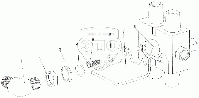 Каталог запасных частей к технике: МЗКТ-7401. Установка клапана защитного четырехконтурного