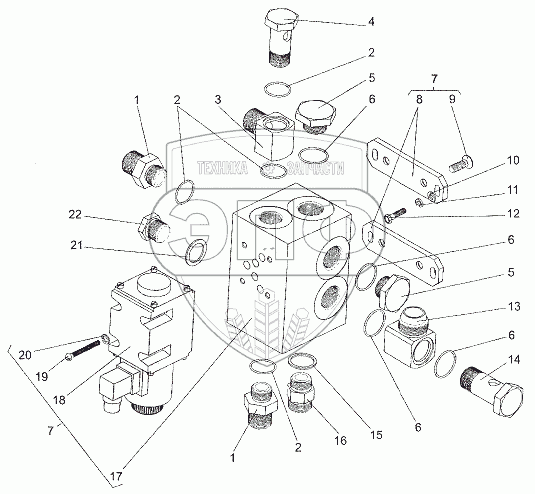 Каталог запасных частей к технике: МЗКТ-7401. Установка коробки клапанной