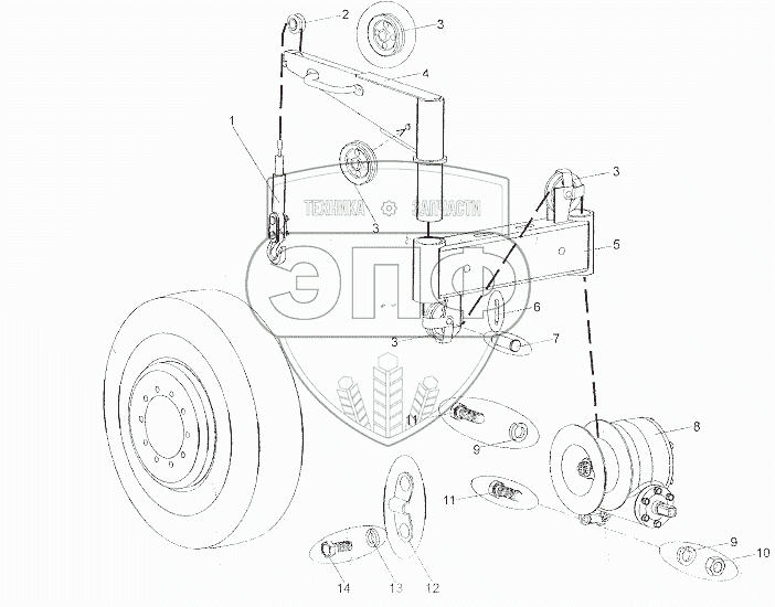 Каталог запасных частей к технике: МЗКТ-7401. Установка подъемника запасного колеса