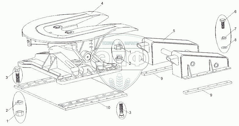 Каталог запасных частей к технике: МЗКТ-7401. Установка седельного устройства