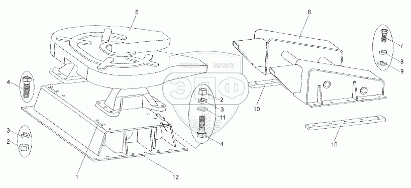Каталог запасных частей к технике: МЗКТ-7401. Установка седельного устройства