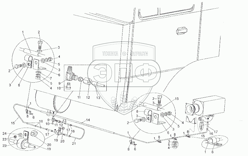 Каталог запасных частей к технике: МЗКТ-7401. Установка топливопроводов независимого отопителя