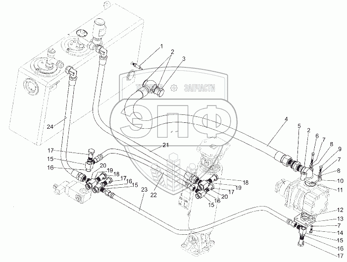 Каталог запасных частей к технике: МЗКТ-7401. Установка трубопроводов