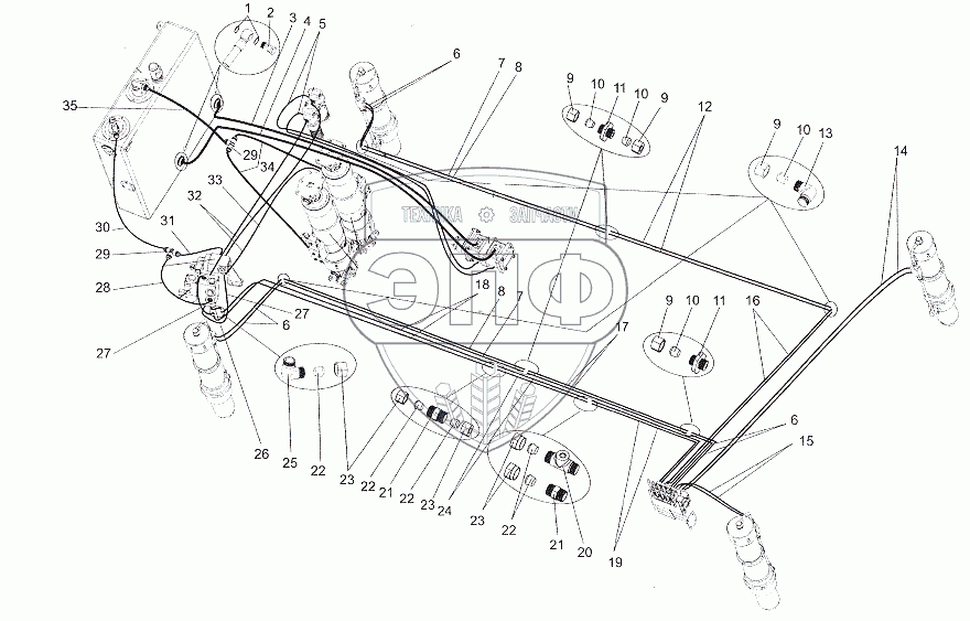 Каталог запасных частей к технике: МЗКТ-7401. Установка трубопроводов