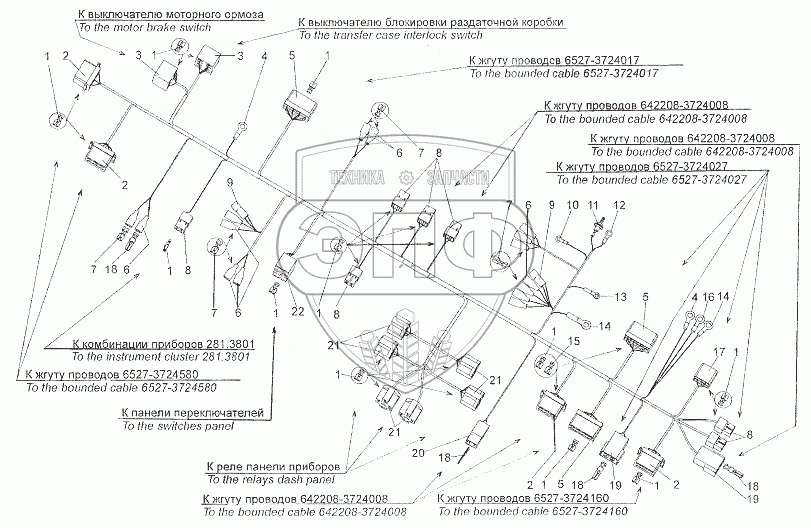 Каталог запасных частей к технике: МЗКТ-7401. Жгут проводов 6527-3724008